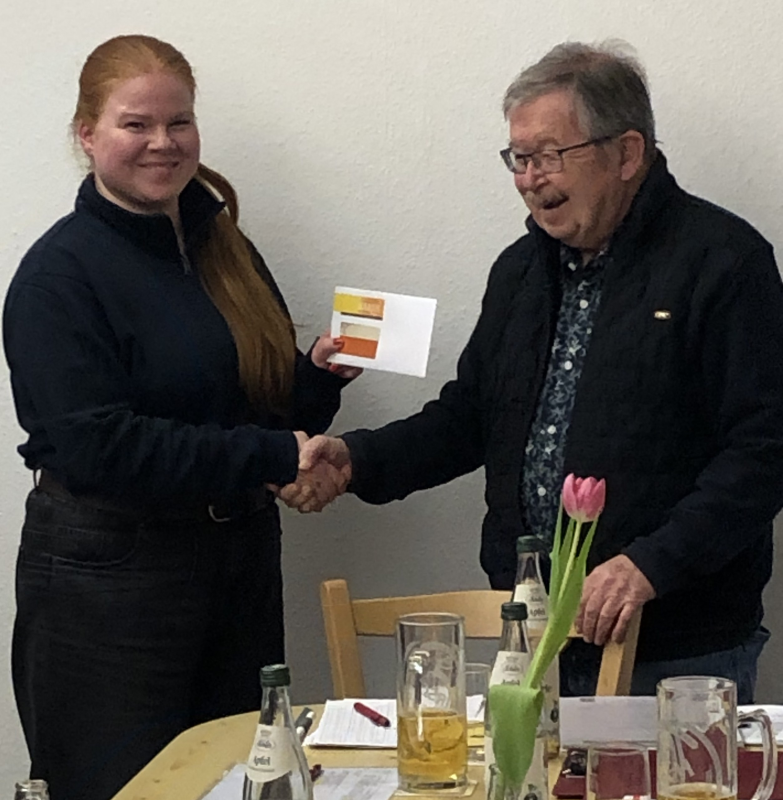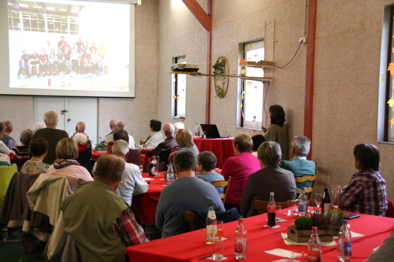 Nach der Kaffeerunde waren Alle eingeladen zum Hören, Zuschauen, Raten und Mitsingen. Ellen Schweser präsentierte einen unterhaltsamen Rückblick in 10-Jahres-Schritten von 1925 bis 2025. Es ging um Weltgeschichte, große und kleine Erfindungen und Zeitgeschichtliches der TG Schura.